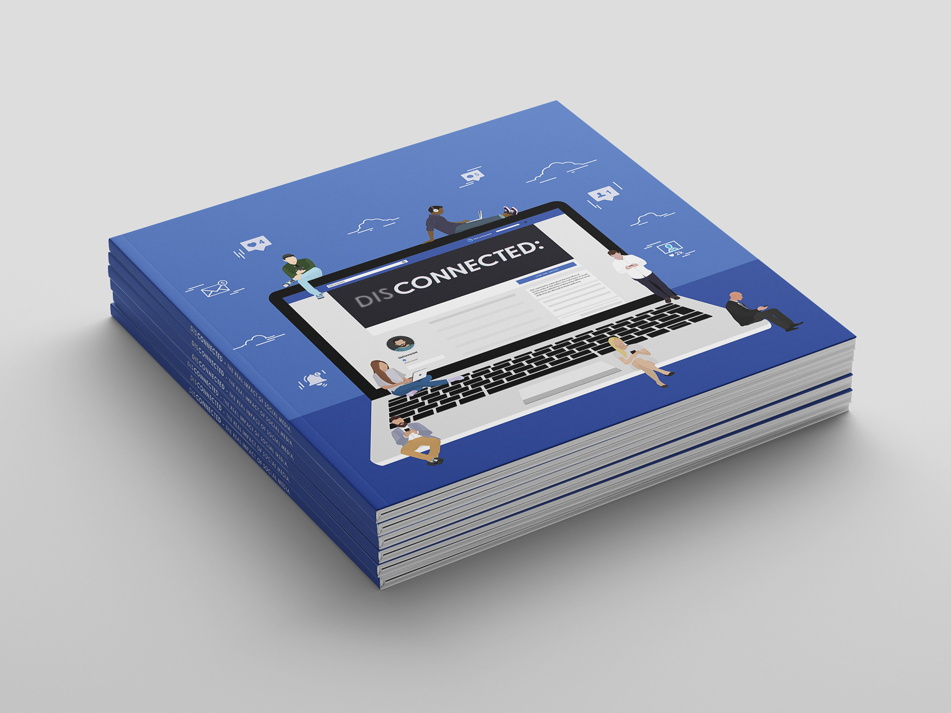 The task for this project was to produce a zine on the subject of a topic that communicates a message to the audience. Disconnected is a zine which outlines the underlying effects that excessive use of social media can have in different areas of our lives and the world. The zine works as an educational guide to social media and reveals some of the impacts that these platforms can have.
