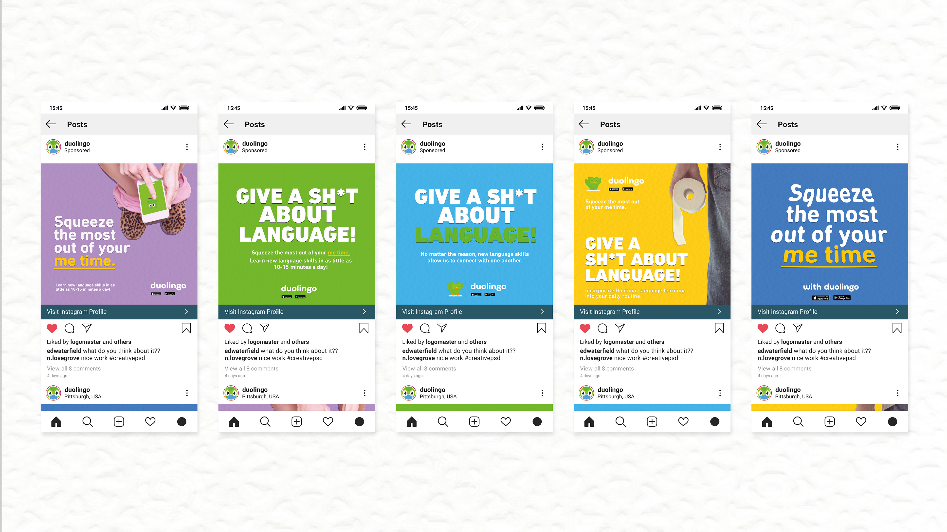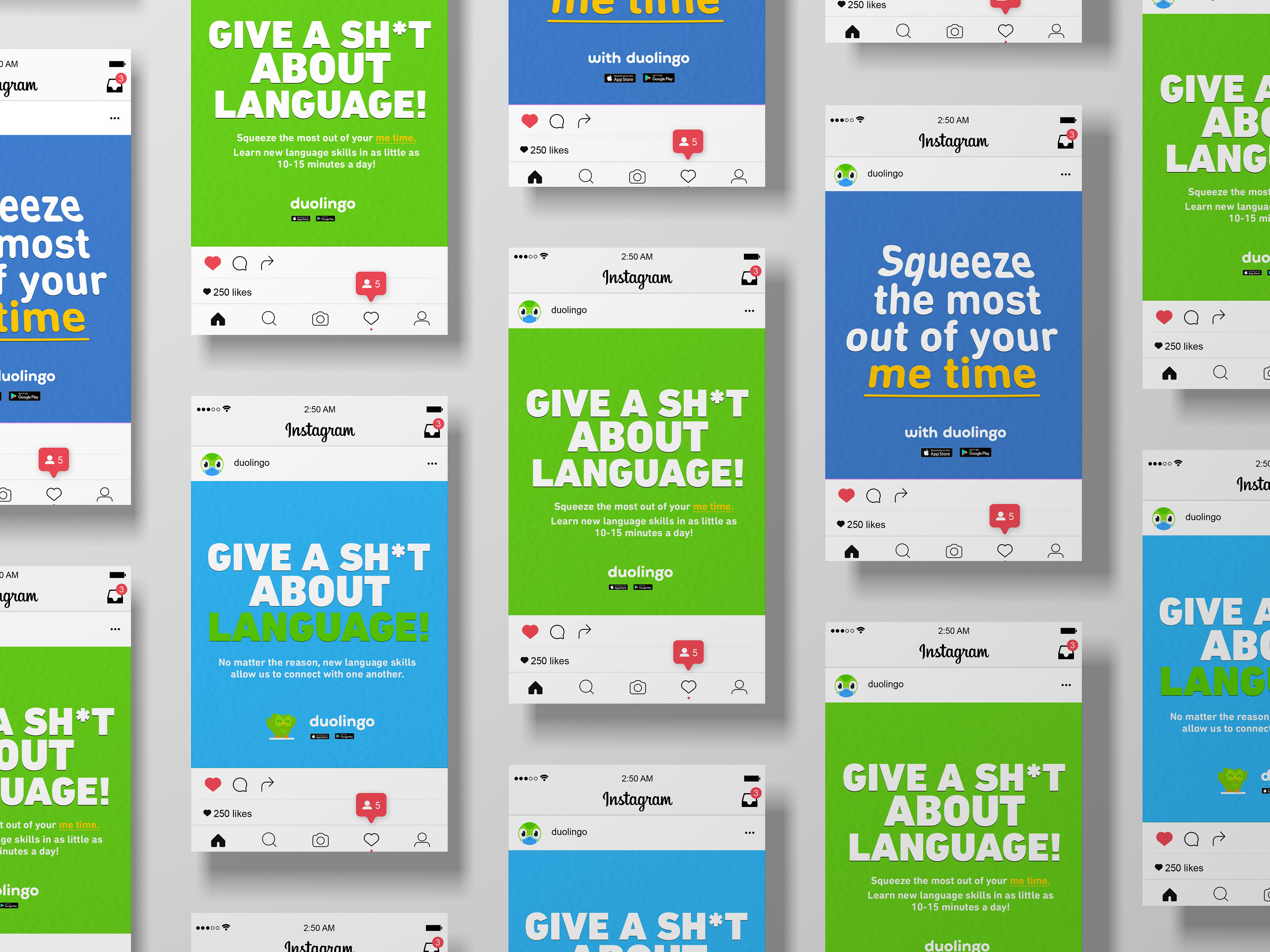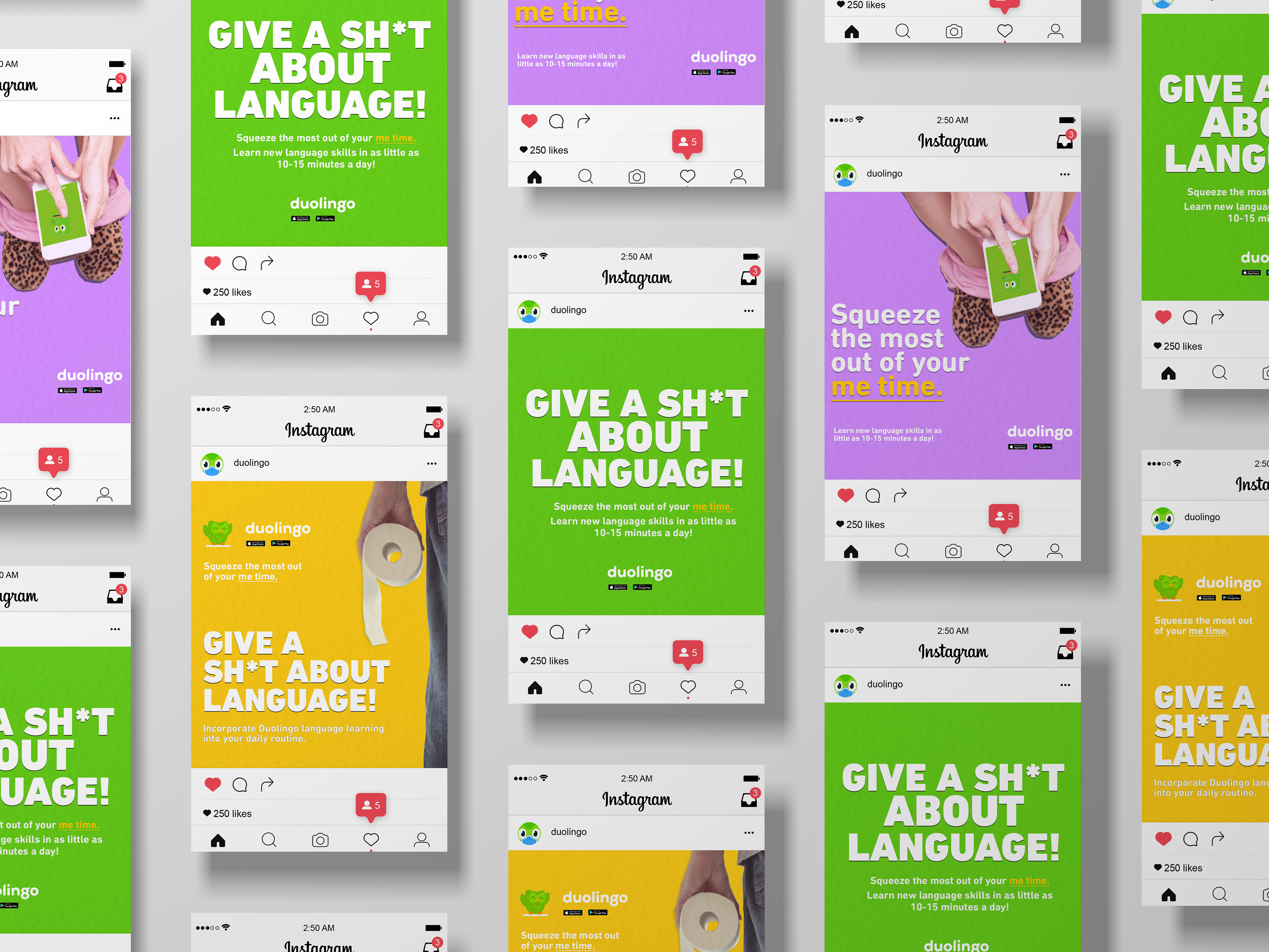 Give a sh*t about language is all about encouraging young adults aged 16-22 to use Duolingo whilst on the loo and make the most out of their time. The campaign uses posters, social media and other promotional materials to engage the audience with Duolingo.