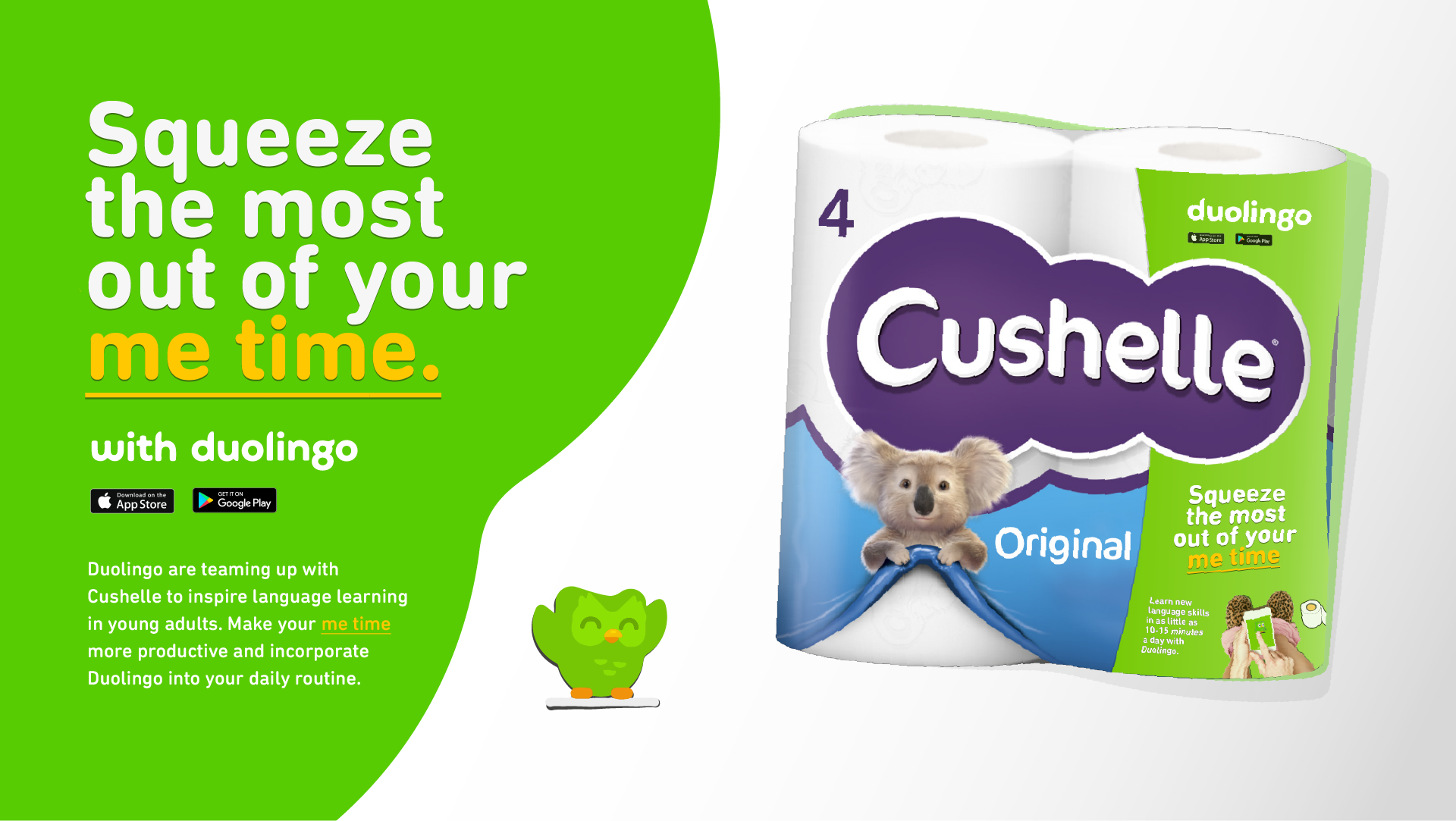 As part of the campaign, Duolingo will team up with toilet tissue brand Cushelle to work together on the challenge. The plan is to print the displayed advertising on their Original product range, which will be rolled out at the start of the new school year. The aim is for young adults, and parents of those that live at home, who buy Cushelle to download the app and spread the word.