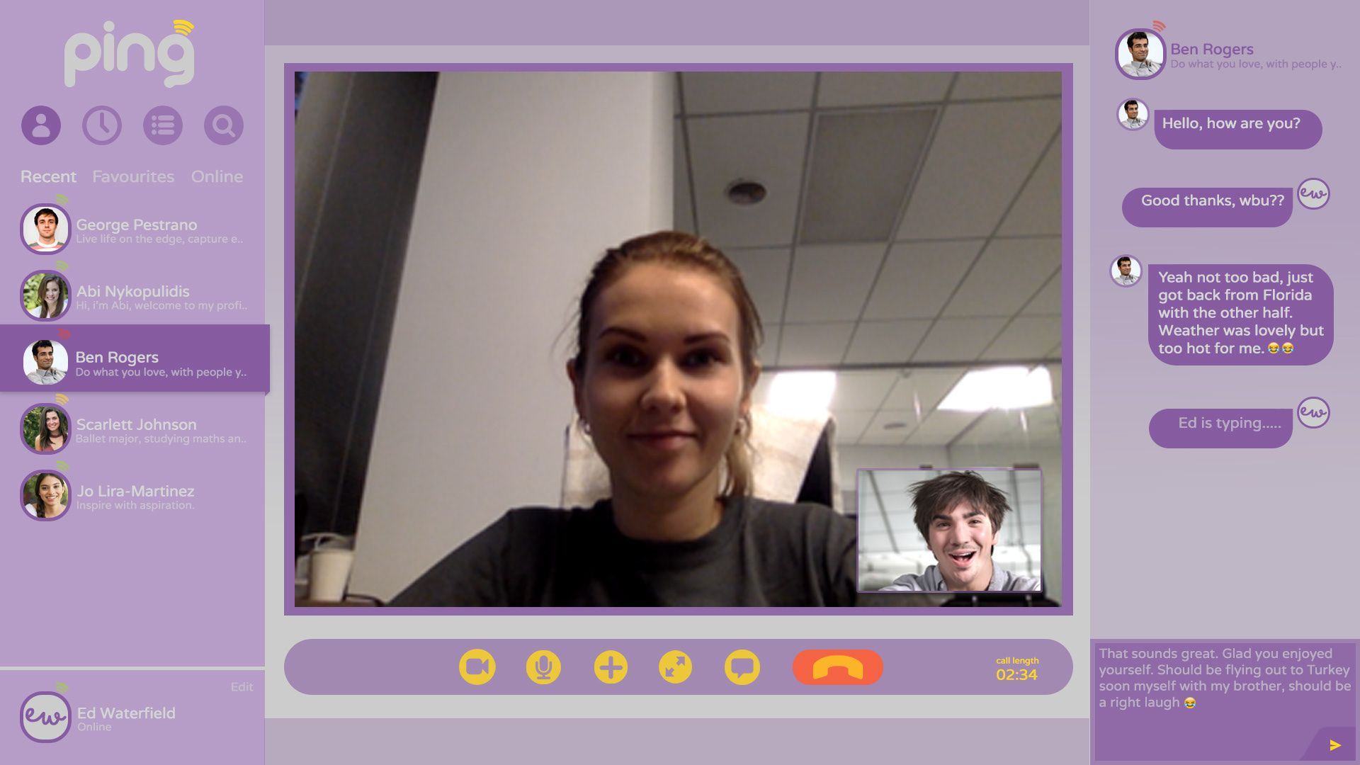 Ping provides a simple and easy-to-use video/voice communication service to desktop and mobile app users. The app has more than 5 million loyal users around the world and more than 60 million minutes of international video calls every month. It is great for people with close relationships, including friends, family members, and colleagues, as well as perfect for business calls. Users can publish and participate in online interactive activities so that they can have shared life moments and experiences with their friends and family regardless of how far away they are.