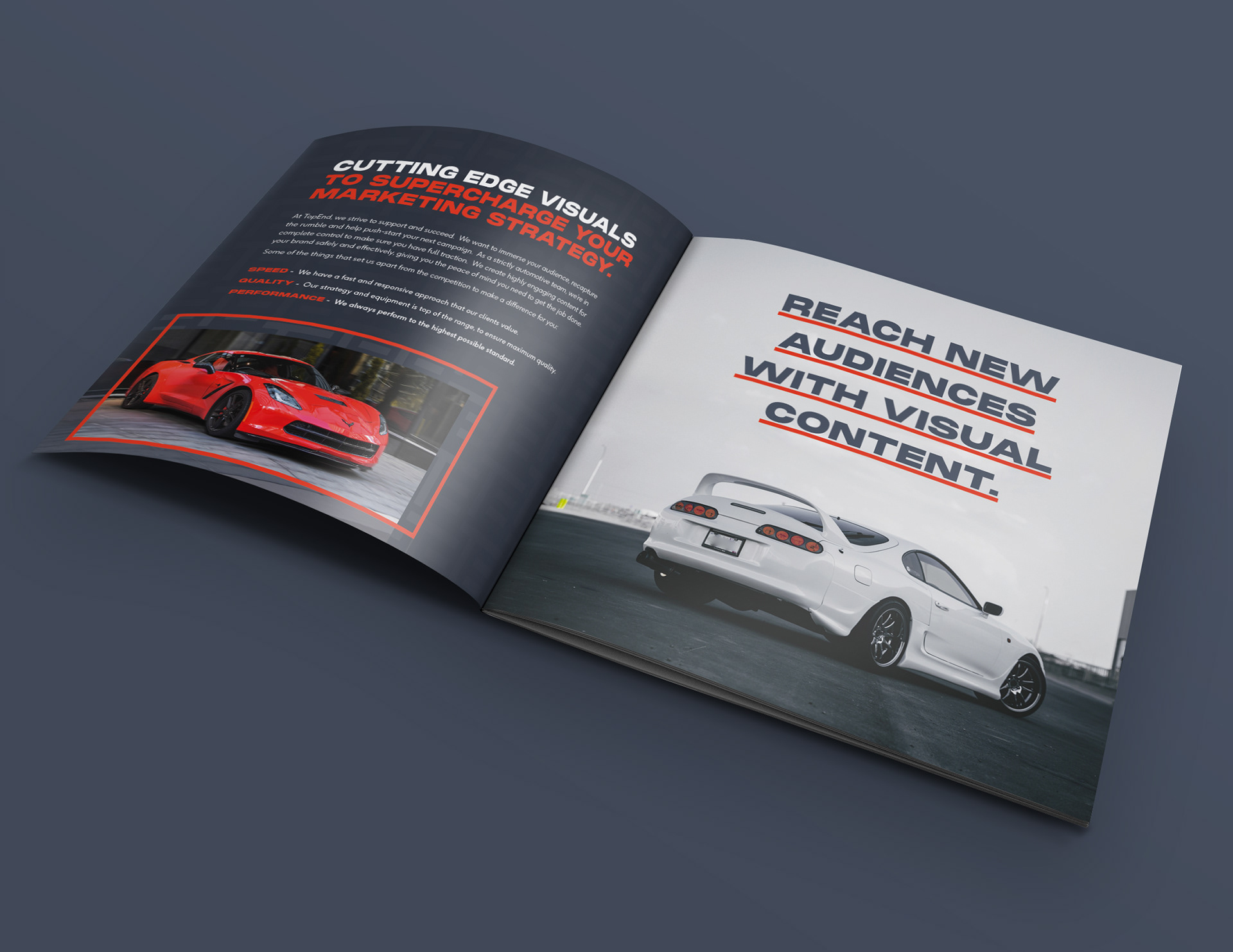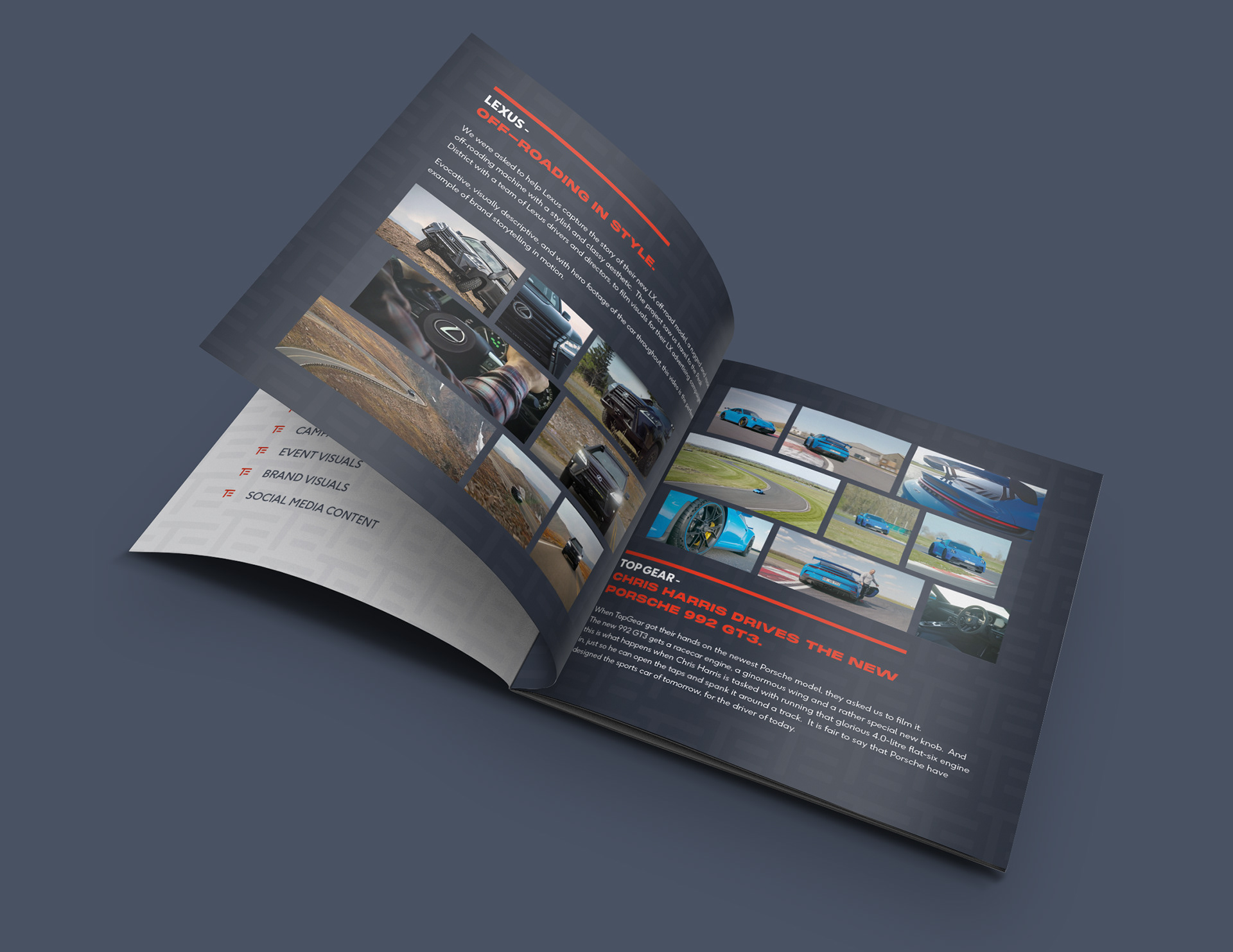The task for this project was to take control of a self-imitated piece of graphic design that either informs, educates, or solves a problem. A brief had to be written, deciding exactly what is intended to communicate, who the audience is and what it seeks to achieve. The plan was to create an automotive videography / photography agency who specialise in dynamic visuals for modified and high-end car owners, producing a full brand identity design and promotional materials.
