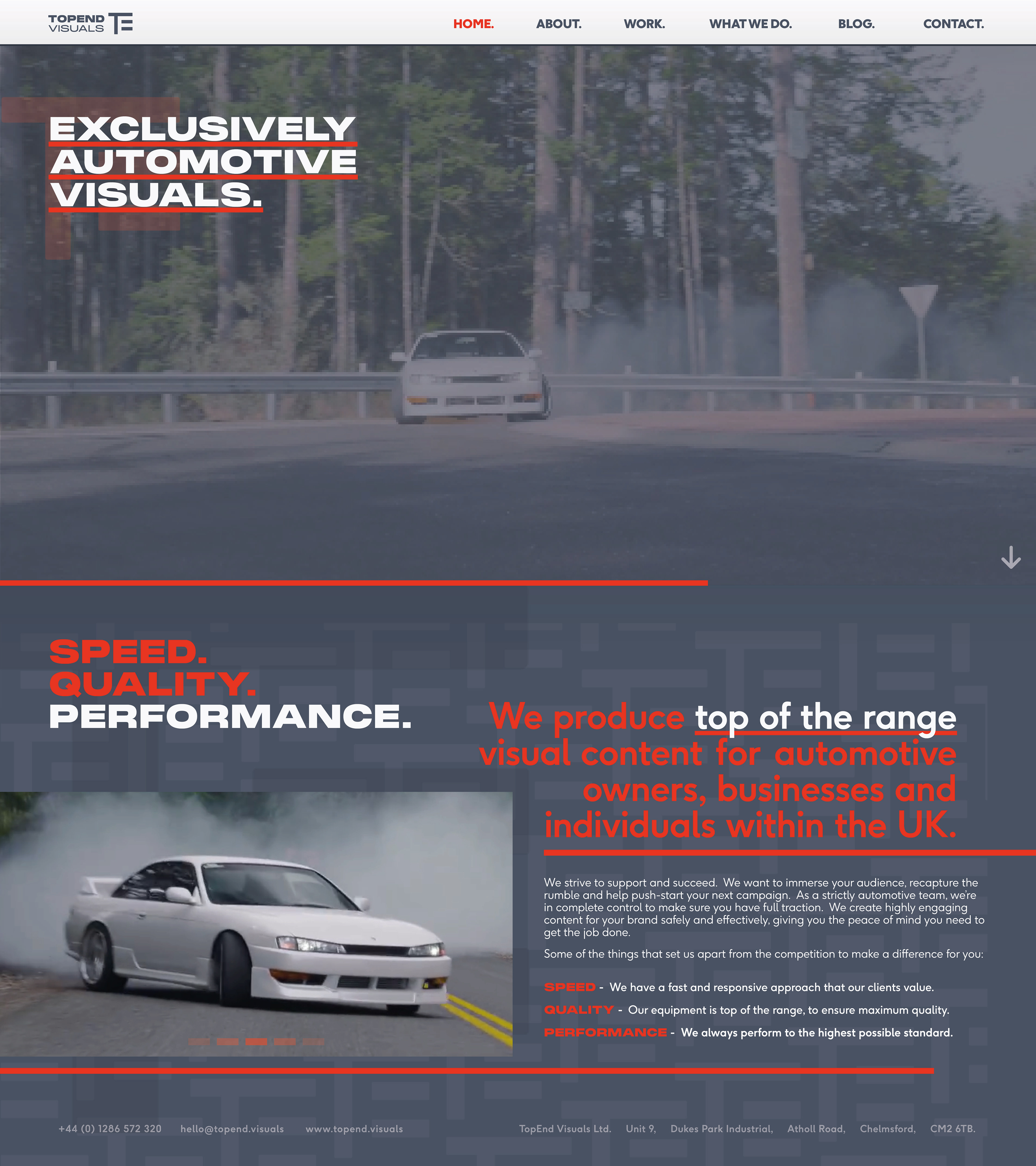 TopEnd Visuals are a creative visual production team based in Chelmsford, Essex. Specialising in motion and motionless production for the higher-end world of cars, we strive to produce top of the range visual content for automotive owners, businesses and individuals within the UK.